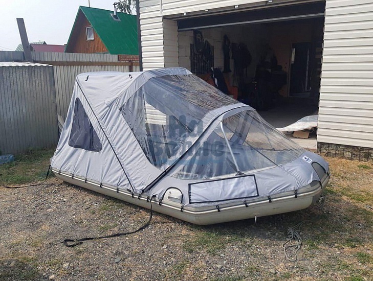 Легкость трансформации: возможность быстро отстегнуть достройку и использовать только носовой тент. Носовой тент также можно использовать, как отдельно от всей конструкции, так и в сочетании с крышей, подняв остальные части тента.
